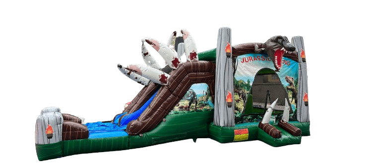 This unit is amazing. Kids love this unit because it has two lanes. They enjoy racing down the dual lanes. It also contains a basketball hoop inside and has some obstacles. This is a large bounce house, and the slides are taller than most bounce house combinations. It can be rented for residential, commercial and at parks. It can be used both wet and dry.